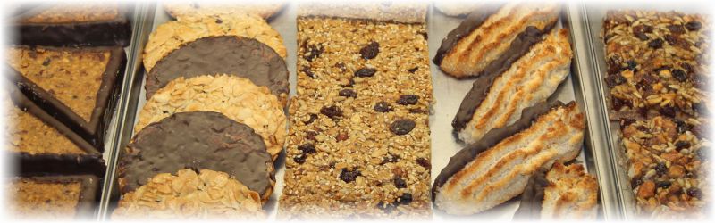 Neben dem vielfältigen Brotsortiment wie zum Beispiel dem Rüblilaib, 7 Kornschrotbrot, Joghurtbrot oder auch einem Bayernlaib, dürfen wir Sie auch mit Leckereien wie Dinkelmond, Walnussschnitten, Käsekuchen oder den absolut verführerischene Trüffelvariationen verwöhnen.
